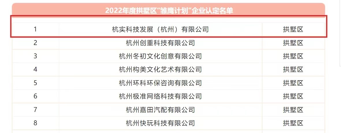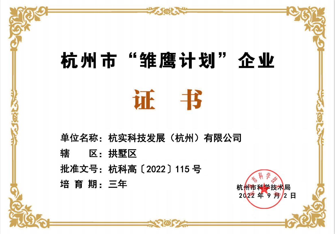 2022年9月,杭實科技發展(杭州)有限公司(以下簡稱“杭實科技”)榮獲杭州市“雛鷹計劃”企業稱號!